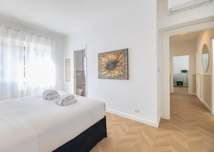 Este apartamento de 100 m^2 en Roma está a 3 km del Panteón y a un par de minutos en coche de la torre de san Juan. Situado a 850 metros de la estación más cercana de metro, este apartamento está al lado de la Via Marziale.